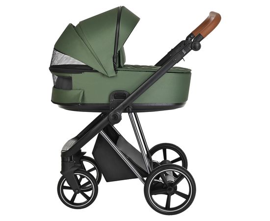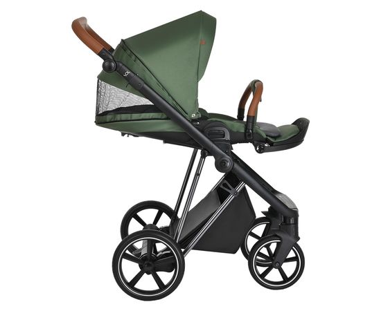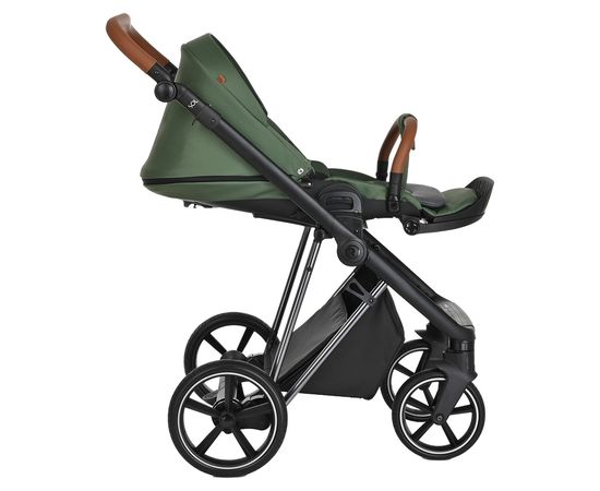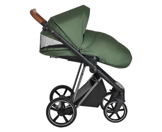 Большая полноразмерная, бескаркасная люлька, предусмотрена глубокая система вентиляции нового поколения «double Air». Отделка внутренней части люльки выполнена из хлопковой натуральной ткани, имеется дополнительный бортик для использования коляски в зимний период. Большой глубокий капор и регулировка капюшона.