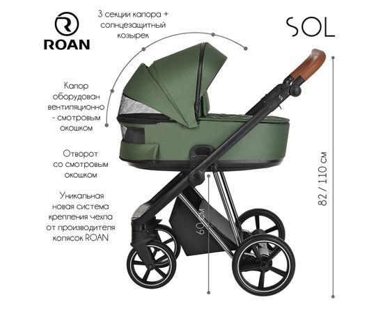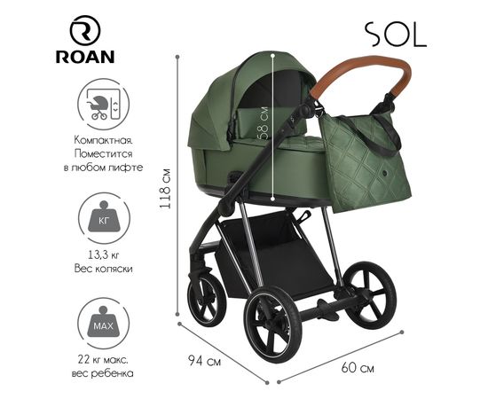 Многофункциональная модульная коляска Roan Sol Lux– это детская коляска высокого качества в идеальном исполнении, которое заметно с первого взгляда.