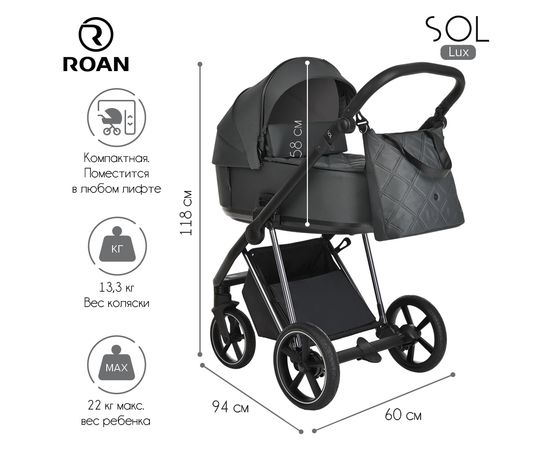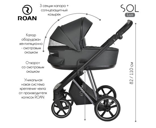 Многофункциональная модульная коляска Roan Sol Lux– это детская коляска высокого качества в идеальном исполнении, которое заметно с первого взгляда.