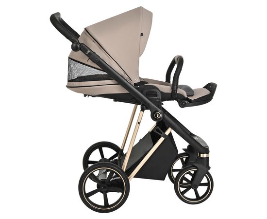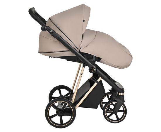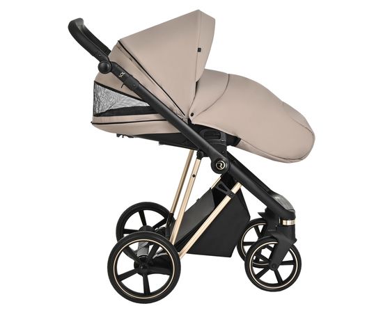 Большая полноразмерная, бескаркасная люлька, предусмотрена глубокая система вентиляции нового поколения «double Air». Отделка внутренней части люльки выполнена из хлопковой натуральной ткани, имеется дополнительный бортик для использования коляски в зимний период. Большой глубокий капор и регулировка капюшона.