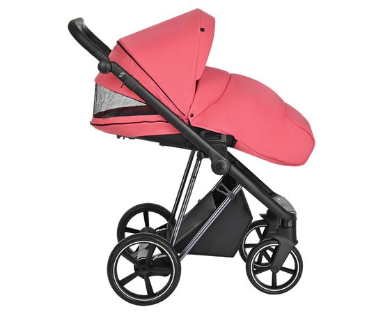 Большая полноразмерная, бескаркасная люлька, предусмотрена глубокая система вентиляции нового поколения «double Air». Отделка внутренней части люльки выполнена из хлопковой натуральной ткани, имеется дополнительный бортик для использования коляски в зимний период. Большой глубокий капор и регулировка капюшона.