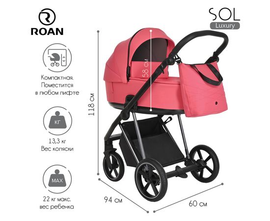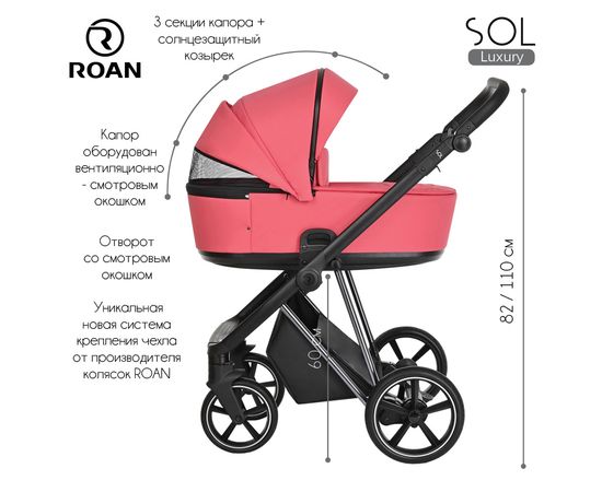 Многофункциональная модульная коляска Roan Sol Luxury– это детская коляска высокого качества в идеальном исполнении, которое заметно с первого взгляда.