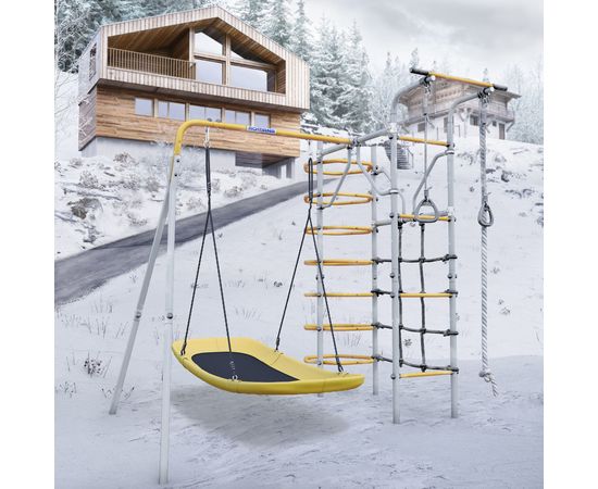 Нагрузка на детское навесное оборудование (сетка лаза и кольца) не должна превышать 50 кг.