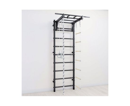 Шведская стенка для детей и взрослых. Изготовлена из усиленного профиля. После установки комплекс плотно прилегает к стене. На каждой перекладине предусмотрены прорезиненные накладки.