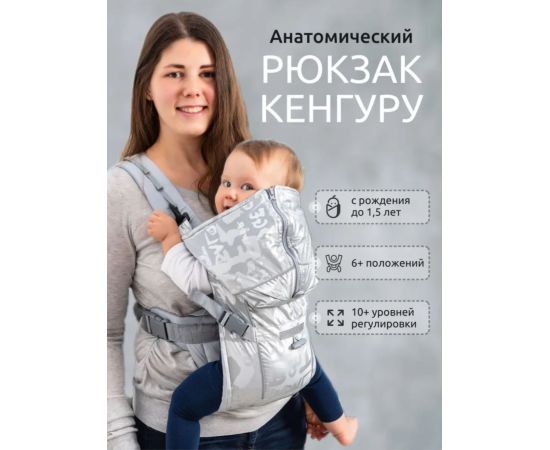 Рюкзак-кенгуру BabyActive Shine серебряный/буквы