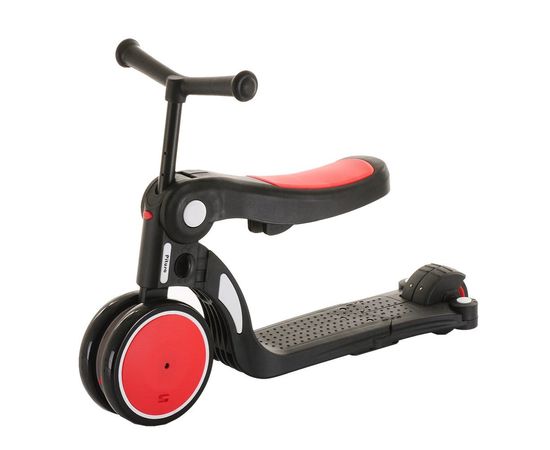 Может трансформироваться из 2-х колесного самоката или беговела в 3-х колесный и быстро переделывается в трехколесный велосипед.