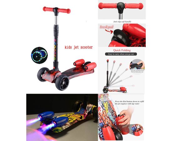 Трехколесный самокат с передними и задним огнями, парогенератором и звуком» - управляется при помощи наклона руля,что делает его маневренным. Его особенностью являются две задние турбины с подсветкой, испускающие пар и издающие звук. Также у него имеются передние фары и светящиеся колеса.