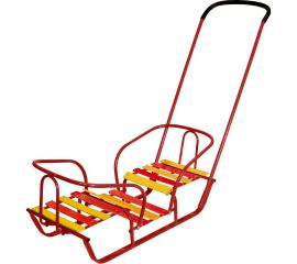 Санки-двойняшки Ника "СД" - практичные, удобные, яркие .  Имеют плоские полозья, ручку, которая регулируется в двух положениях. подножку, трос-веревку, два удобных посадочных места со спинками. Рейки для сидения расположены поперек санок. Съемная ручка-толкатель. Подножка для ног между...