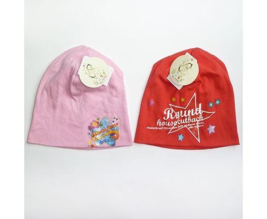 Шапка демисезонная однотонная с рисунком в ассортименте для девочки - трикотажная, различных расцветок - на удачу. Размер 5-8 лет.
