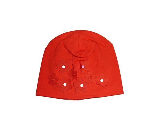 Шапка трикотажная красная с мелкими цветочками 0-6мес - отлично на весну-осень. С красивой аппликацией в виде маленьких, нежных цветочков. Размер один: 0-6 мес.