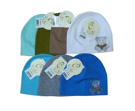 Шапочки однотонные с мишками - отличные шапочки для непонятной погоды! Хорошо тянутся, отлично смотрятся! Подойдут как мальчику, так и девочке. Цвета - розовые, горчичные, серые, голубые и многие другие. Размер: 0-6мес. Цена за 1 штуку. Аппликация из страз привлекает внимание на себя.