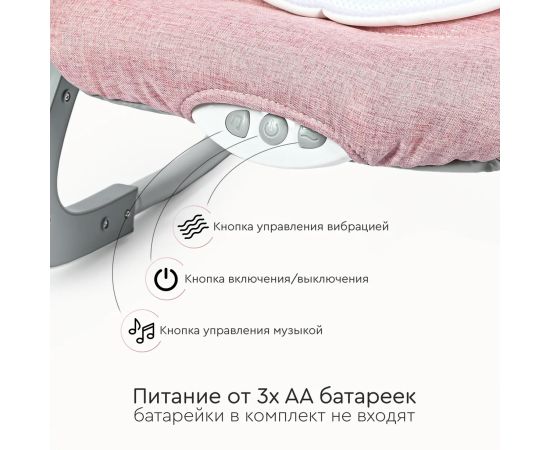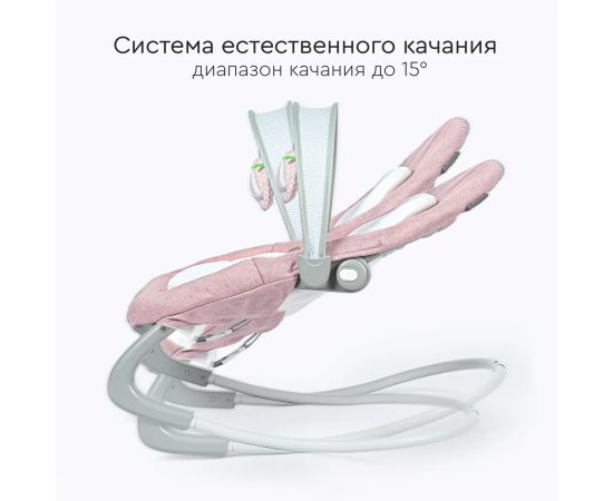Система естественного качания обеспечивает мягкое и плавное движение шезлонга, имитируя качание на руках у мамы, что помогает успокоить малыша и убаюкать его. У шезлонга предусмотрены режим прослушивания успокаивающих мелодий и режим вибраций, которые помогут малышу расслабиться и заснуть.