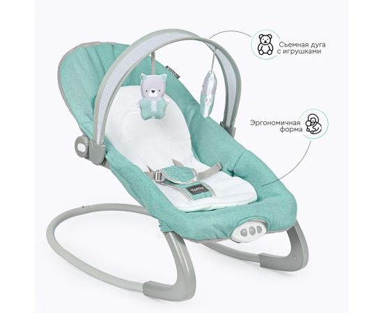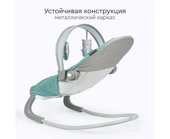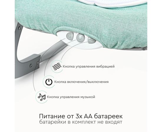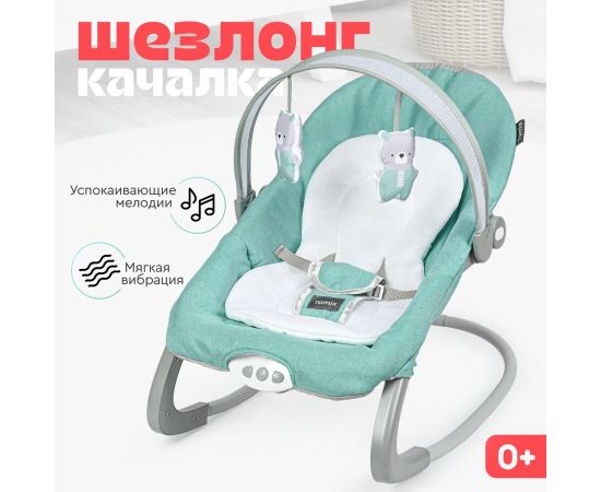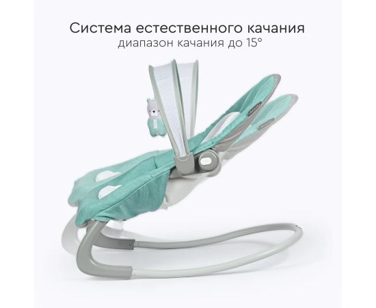 Система естественного качания обеспечивает мягкое и плавное движение шезлонга, имитируя качание на руках у мамы, что помогает успокоить малыша и убаюкать его. У шезлонга предусмотрены режим прослушивания успокаивающих мелодий и режим вибраций, которые помогут малышу расслабиться и заснуть.
