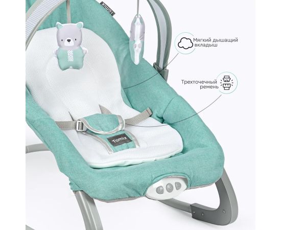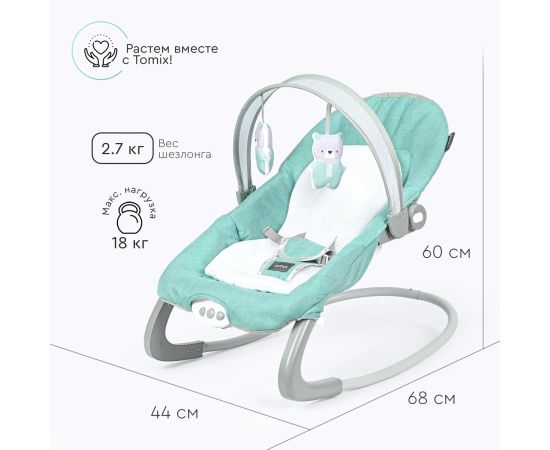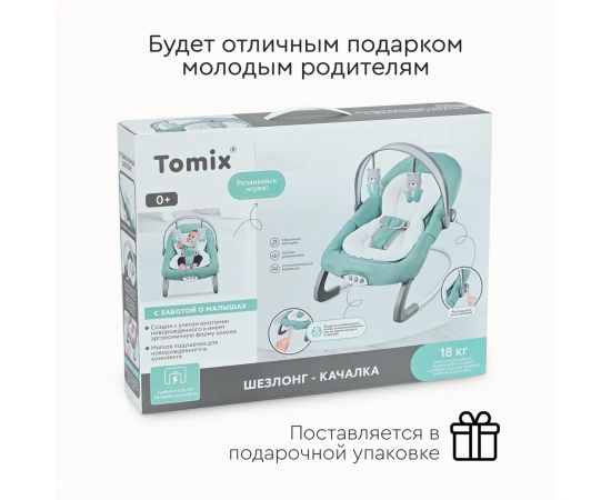 Детский шезлонг-качалка Tomix Sleeper – это незаменимый помощник для молодых родителей, который позволит вам освободить руки и обеспечить комфорт вашему малышу с самого рождения. Этот шезлонг оборудован специальной дугой с милыми игрушками, которые будут развлекать малыша, развивая его зрительное восприятие и моторику.