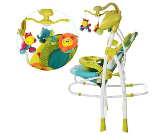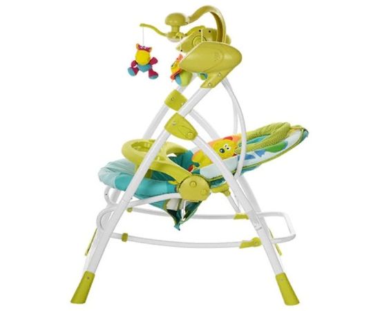 Кресло-шезлонг обеспечено дугой с подвесными игрушками, которые притягивают внимание ребенка.