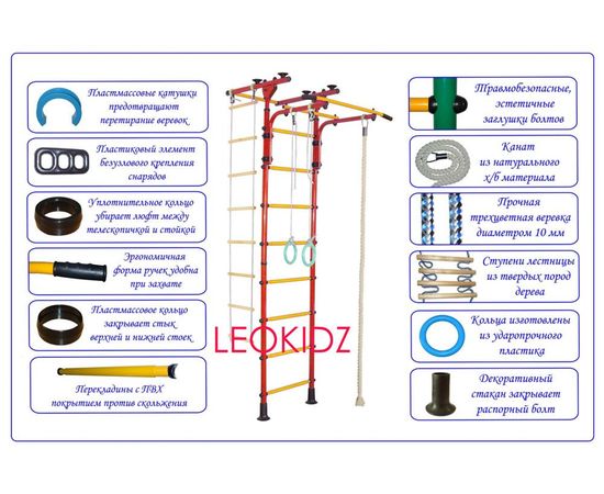 Шведская стенка ДСК Юный Атлет Пол-Потолок-Т Распорный Красный