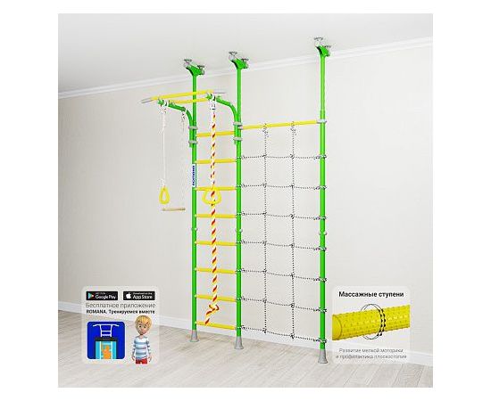 Дополнительно, комплекс стал еще лучше визуально благодаря новой цветовой гамме, более насыщенной, яркой и приятной взгляду. Такая стенка — украшение детской комнаты! А еще с 2018 года отличный способ добавить больше физической активности в повседневные занятия ваших домочадцев — скачать бесплатное приложение «ROMANA. Тренируемся вместе».