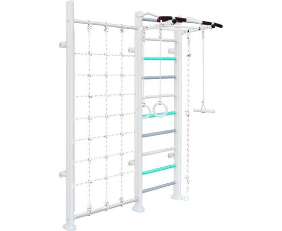В комплекте : гимнастическая лестница, кольца, канат, тарзанка, канатный лаз, 6 пристенных кронштейнов