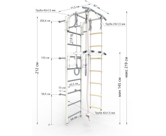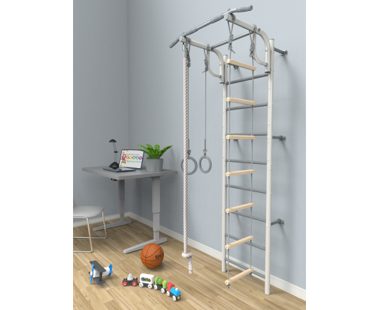 Шведская стенка Rokids ДСК-12.с Атлет-2 ступеньки ПВХ Бело серый