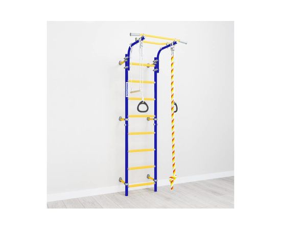 В комплексе ROMANA Next Top предусмотрены массажные ступени, которые хорошо развивают моторику и служат профилактикой плоскостопия. Также в комплекте идет навесное оборудование: кольца, трапеция и канат.
