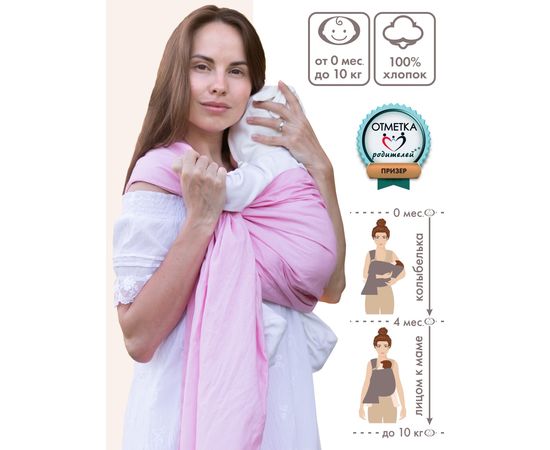- Слинг единоразмерный, и значит, его без ограничений могут надевать все члены семьи.