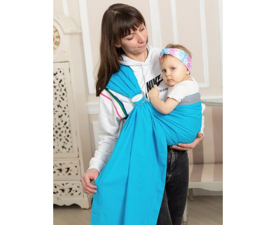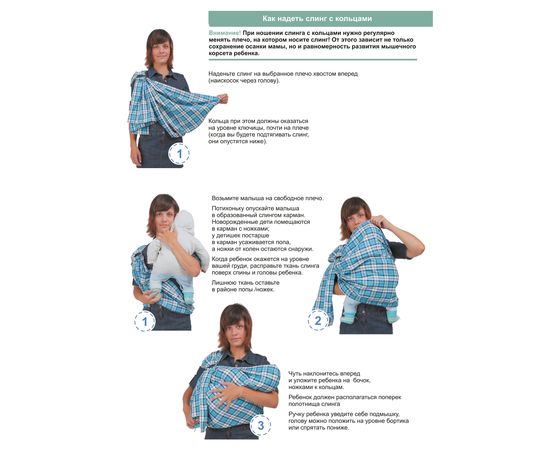 Слинг единоразмерный, и значит, его без ограничений могут надевать все члены семьи.