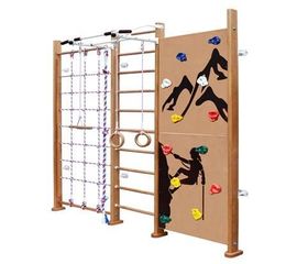 Сегодня существуют детские шведские стенки, которые легко устанавливаются дома и не занимают много места. Они отличаются меньшими габаритами и наличием игровых элементов для занятий (мячи, кольца, маты и многое другое). Использовать их взрослому нельзя, так как такие стенки не смогут выдержать большой нагрузки.