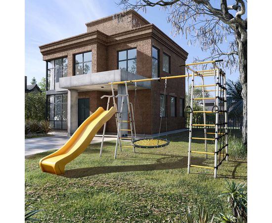 Яркий, спортивно-игровой комплекс ROMANA Богатырь MAX Плюс-2 с качелями сеткой - гнездом радует детей еще больше – здесь появилась замечательная горка! Заказывая данный комплекс, вы получаете не только качественное изделие, но и полную безопасность для детей. Горка изготовлена из высококачественного польского пластика, что подтверждается сертификацией товара. ROMANA - ведущий российский производитель детского игрового оборудования, завод этой компании давно зарекомендовал себя и проверен испытаниями временем. Кроме того, для уверенности в долговечности и надежности комплекса, будьте уверены, что он выполнен из металла не менее 4 мм и покрыт специальной антикоррозионной атмосферной краской. Все детали и навесные снаряды созданы специально для использования на улице и не подвержены воздействию атмосферы. Такой комплекс прекрасно подойдет для игр и занятий на свежем воздухе, обеспечивая и детям, и родителям безопасность и удовольствие.