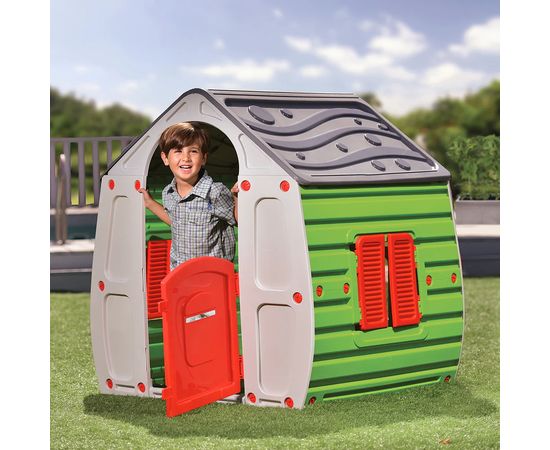 - Яркий уютный игровой домик станет любимым местом игры ребятишек на открытом воздухе.