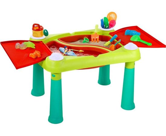 Детский Столик CREATIVE для творчества и игры с водой и песком - предназначен для игры деток возрастом от 2-х лет. Столик имеет 2 съемные емкости: одну для воды, вторую для песка, которые имеют объем по 15 литров, это позволит придумать малышам множество разнобразных игр. Столик имеет 4 формочки и крышки, что бы накрыть столик, когда детки играться не будут, а в открытом состоянии они могут использоваться как столешницы.