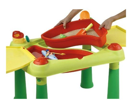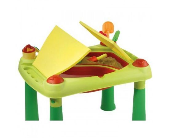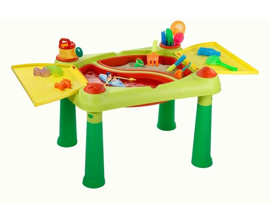 Детский Столик CREATIVE для творчества и игры с водой и песком - предназначен для игры деток возрастом от 2-х лет. Столик имеет 2 съемные емкости: одну для воды, вторую для песка, которые имеют объем по 15 литров, это позволит придумать малышам множество разнобразных игр. Столик имеет 4 формочки и крышки, что бы накрыть столик, когда детки играться не будут, а в открытом состоянии они могут использоваться как столешницы.