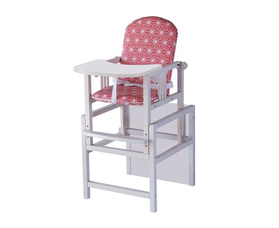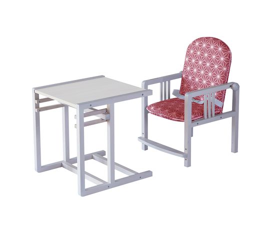 Стул предназначен для детей от 6 месяцев до 3 лет. В качестве отдельного стула может использоваться до 6 лет – по усмотрению родителей. Из высокого стульчика для кормления он легко трансформируется в отдельный стол и стул. Конструкция основательная и весит около 13 кг. При этом гарантируется абсолютная надежность и безопасность модели.
