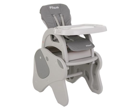 Стульчик-трансформер для кормления 3 в 1 Pituso Dog растет вместе с ребенком. В собранном виде может быть высоким стульчиком для кормления со съемным подносом и 5-точечными страховочными ремнями безопасности. Спинка регулируется в 3-х положениях, что позволяет ребенку вздремнуть после плотной трапезы. Трансформируется в отдельную комбинацию — стол + стул в форме собачки — Вашему малышу будет интересно играть и заниматься творчеством.