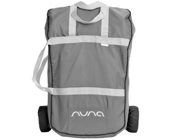 Сумка Nuna предназначена для безопасной транспортировки колясок Pepp Luxx. Сумку можно носить как рюкзак за ручки, как чемодан горизонтально или вертикально. Коляску в сумке можно катить за собой, для чего у нее есть отверстия для колес. Колеса при этом обернуты в чехлы и не пачкаются. На внешней стороне сумки расположен небольшой карман на липучке.