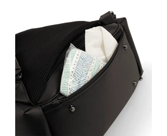 Роскошный многофункциональный рюкзак-сумка из эко кожи с множеством продуманных внешних и внутренних карманов и такими необходимыми аксессуарами, как пеленальный матрасик, органайзер для туалетных принадлежностей и отделение на спинке рюкзака для фиксации на чемодане.