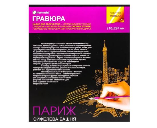 С помощью набора для гравировки «Париж» ваш ребёнок создаст красочную переливающуюся картину. Техника штриховки помогает развивать аккуратность почерка, а также усидчивость и внимательность.
