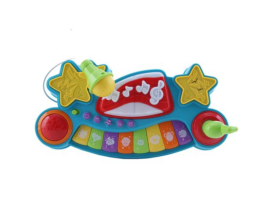 Ведь у этого музыкального инструмента есть 5 игровых режимов и микрофон. Нажимая на кнопочки выбора режимов и на разноцветные клавиши пианино, малыш послушает звучание нот, узнает, как звучат голоса разных зверюшек, и даже поиграет на барабанах!
