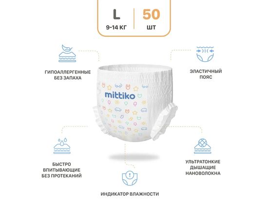 Трусики MITTICO L-(9-14 кг) размер 4 50шт
