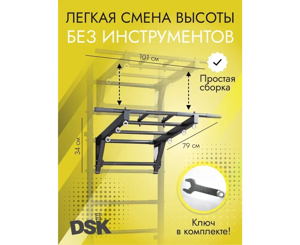 Турник с тремя видами хвата - широким, узким и параллельным, позволяет выполнять целый комплекс упражнений на проработку мышц спины и рук в домашних условиях, а также выполнять упражнения на профилактику сколиоза, остеохондроза и избежать проблем со спиной во время длительного сиденья по работе или учебе. Оснащенный рукоходом турник наверняка понравится детям, тем более, что его можно двигать по высоте шведской стенки.