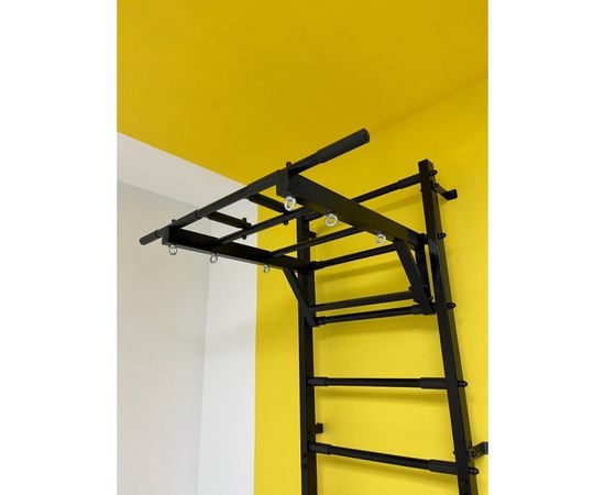 Турник прошел испытания нагрузкой в 250 кг, быстро снимается и фиксируется на любую высоту стенки, поэтому тренажер подходит для занятий спортом для всей семьи: подростков и взрослых разного роста и веса.