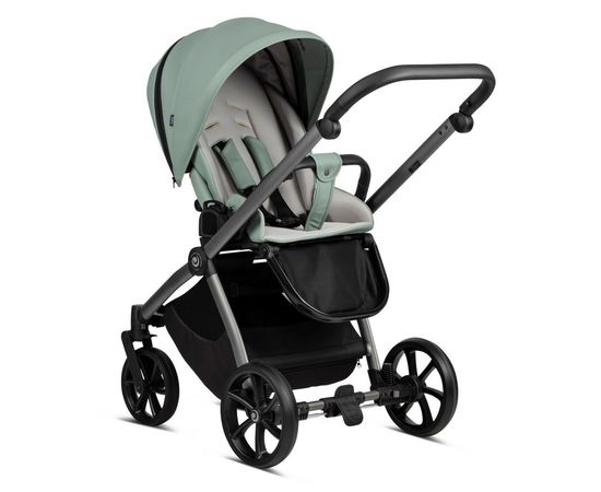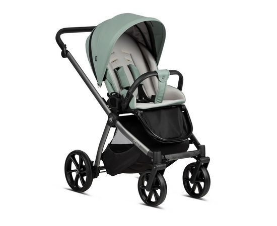 Коляска 2 в 1 Tutis Mio имеет систему двойной амортизации, которая включает в себя амортизацию передних и задних колес для обеспечения плавных и комфортных прогулок и маневренности коляски. Передняя амортизация нового поколения обеспечивает гораздо лучшую амортизацию и продлевает срок службы шасси.