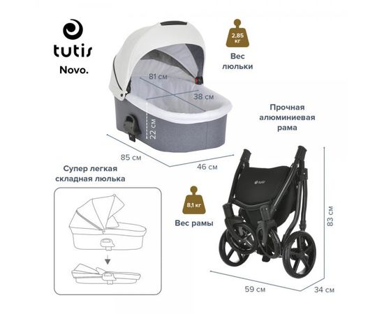 Люлька коляски Tutis Novo очень лёгкая, её можно переносить держа за ручку на капюшоне. Снимите колыбель с шасси и поставьте на ровную поверхность. Благодаря особой форме дна вы можете укачивать ребенка из стороны в сторону. Это позволяет успокоить новорожденного, если он вдруг начал просыпаться. Лёгкая люлька с возможностью укачивания удобна для похода в поликлинику или в гости. И, конечно, особенно ценна, когда малыш уснул во время прогулки. Оставьте шасси за дверью, занесите колыбель в квартиру, не тревожа сон малыша. Спальный блок легко сложить буквально за несколько секунд. Вы сможете перевозить коляску даже в небольшом багажнике. Плюс, такую люльку легко хранить, когда ребенок подрастёт и пересядет в прогулочный блок.