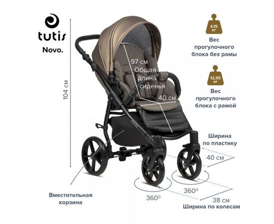 В большую и вместительную корзину поместится всё необходимое. Tutis Novo быстро и компактно складывается даже с прогулочным блоком. Просто сложите ручку, зажмите фиксаторы по бокам и потяните их наверх. Коляска сложится и займет совсем немного места.
