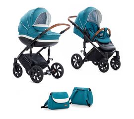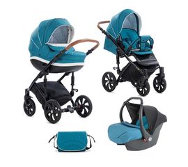 Коляска Tutis 3в1 Mimi Style Лен цвет Морской волны+ кожа Белая