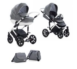 Коляска Tutis 2в1 Mimi Style Серый лен+ белый горох + кожа Белая рама