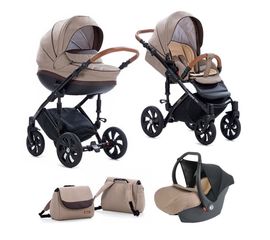 Коляска Tutis 3в1 Mimi Style Бежевый Лен + кожа Коричневая