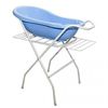 Для купания новорожденных и детей до года большая часть производителей выпускает металлические подставки высотой 80-105 см. Такая высота позволяет взрослому человеку ростом от 165 до 180 см купать ребенка, не нагибаясь. Базовая конструкция — на ножках с резиновыми насадками. Благодаря им подставка не скользит даже по влажному кафельному полу.