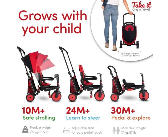 Трехколесный велосипед SmarTfold 300 Plus, предназначен для малышей от 9 месяцев.
