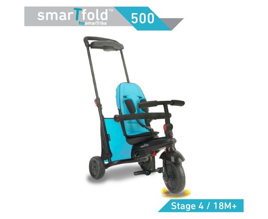 Уникальный в своем классе велосипед-коляска SmarTfold 500 7 в 1 от знаменитого производителя Smartrike! Данная модель является отличной альтернативой коляске.  Благодаря сплошной - усиленной ручке, велосипедом очень легко управлять. Преднее колесо с системой блокировки. Так же есть регулировка наклона руля.