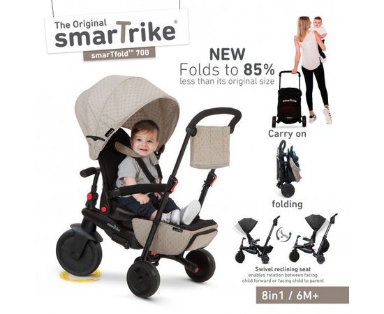 Уникальный в своем классе велосипед-коляска SmarTfold 700 8 в 1 от знаменитого производителя Smartrike, предназначен для малышей от 6 месяцев! Именно реверсивное сидение с высокой поддержкой и несколькими положениями наклона спинки делает данный велосипед альтернативой летней коляски.